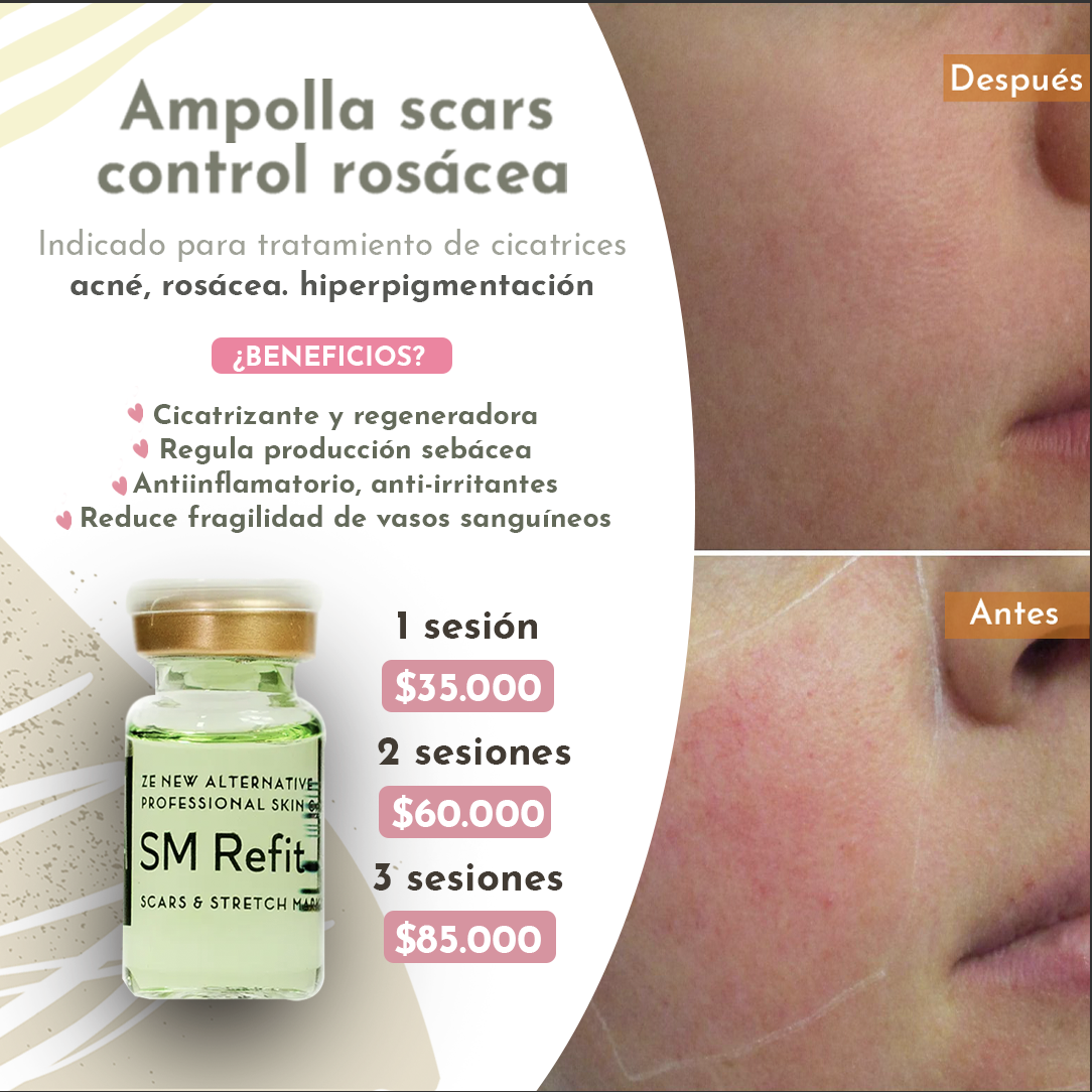 FUNCIÓN COSMÉTICA: Ampolla para tratamiento de cicatrices y estrías. Acné. Rosácea. Hiperpigmentación.